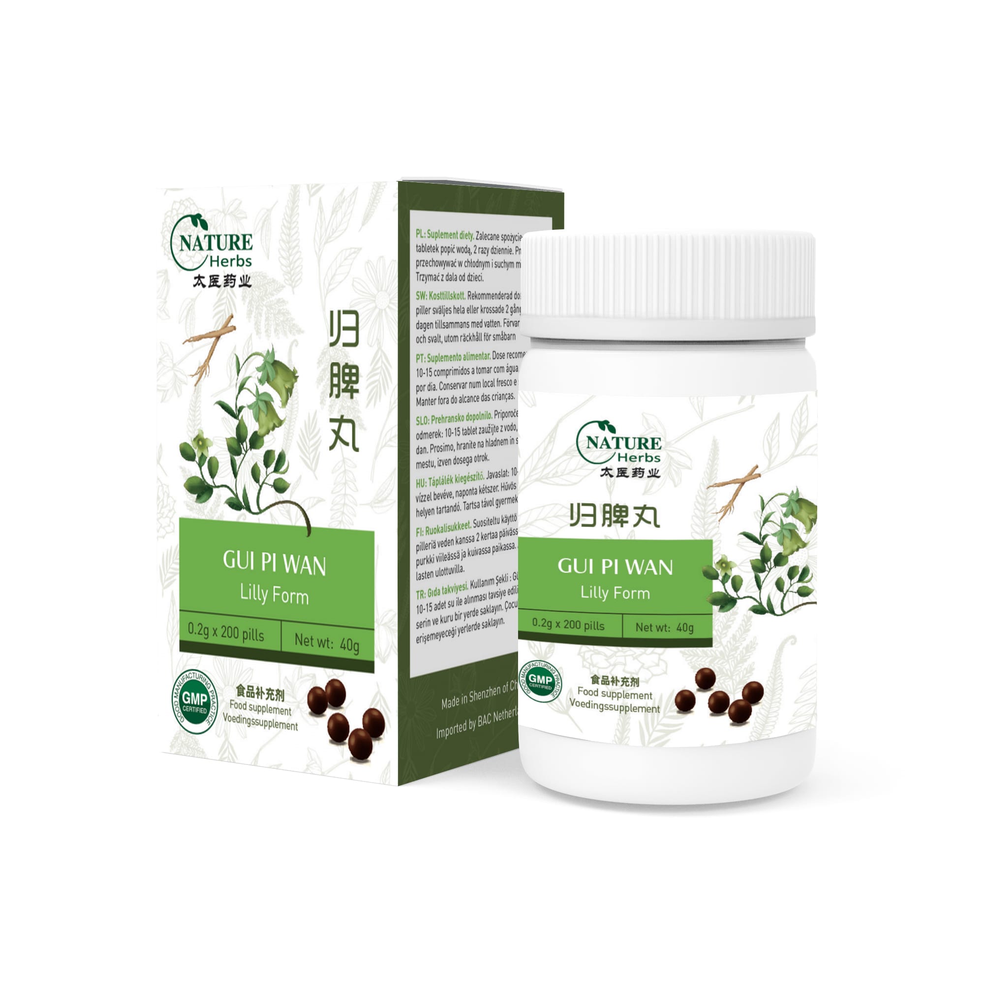 Ingrediënten: Dang Shen, Huang Qi, Bai Zhu, Fu Shen, Suan Zao Ren, Yuan Zhi, Dang Gui, Mu Xiang, Gang Cao, Long Yan Rou
